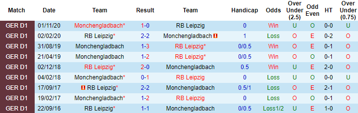 Phong độ và thống kê đối đầu Leipzig vs M'gladbach