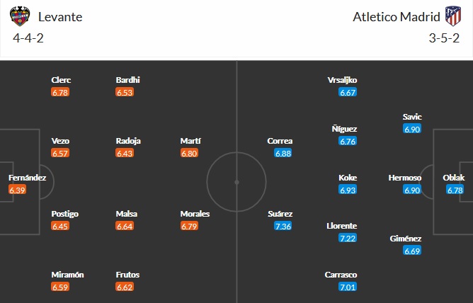 Đội hình dự kiến Levante vs Atletico Madrid