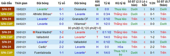 + Thống kê 10 trận gần nhất của Levante