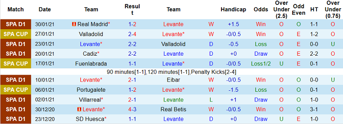 Có thể thấy rằng Levante và Villarreal tương đối ‘cân sức cân tài’. Màn so tài giữa họ thuộc khuôn khổ tứ kết Cúp Nhà vua Tây Ban Nha mùa 2020/21 nhiều khả năng cần tới hiệp phụ.