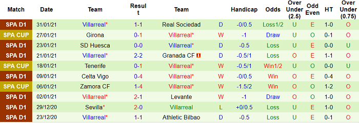 Villarreal là một trong những đội khó bị đánh bại nhất mùa 2020/21. Kể từ khi mùa 2020/21 khởi tranh, Tàu ngầm Vàng bất bại tới 30/32 trận: thắng 18, hòa 12.