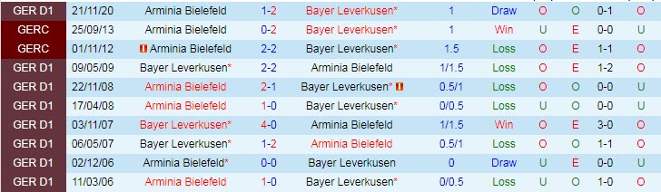 Phong độ và thống kê đối đầu Leverkusen - Bielefeld gần đây: