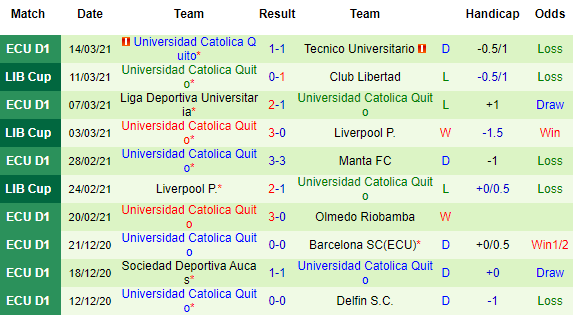 + Thống kê 10 trận gần nhất của Univ Catolica Quito