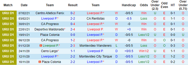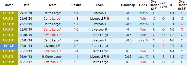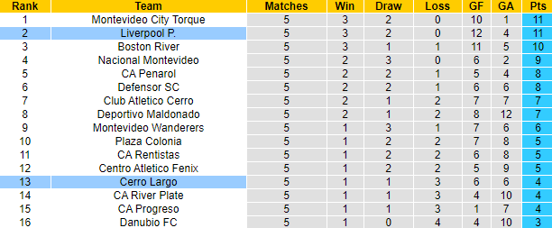 Trong khuôn khổ giải VĐQG Uruguay, Liverpool toàn thắng cả 6 lần tiếp đón Cerro Largo trước đây trên sân nhà, trong đó có 4 trận thắng cách biệt 2 bàn trở lên. Lần tái đấu sắp tới Liverpool tiếp tục được tin tưởng vào khả năng giành 3 điểm trọn vẹn trước Cerro Largo.
