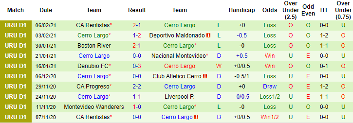Trong khi đó bên phía đội khách, Cerro Largo ngày càng cho thấy dấu hiệu sa sút. Tính từ đầu tháng 11/2020, Cerro Largo để mất điểm tới 9 lần trong vòng 10 trận. 3 trận gần nhất Cerro Largo toàn thua với tỷ số 1-2 và khiến giới đầu tư châu Á phải nhận thất bại.