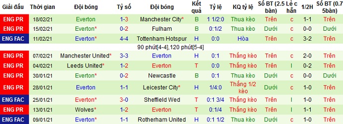 Trong khi đó Everton sau trận thắng đầy kịch tính trước Tottenham tại FA Cup, đội bóng lại để thua trong cả 2 trận gần nhất ngay trên sân nhà. Nếu như trận thua trước Man City có thể coi là chấp nhận được thì trận thua trước Fulham quả thật là khó hiểu. Thế nhưng trên sân khách Everton đang bất bại ở 7 lần du đấu gần nhất, trong đó có tới 5 trận thắng.
