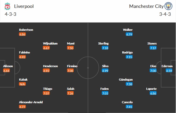 Đội hình dự kiến Liverpool vs Man City