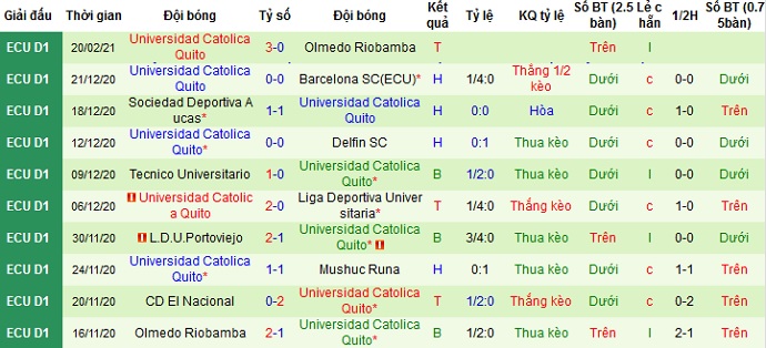 + Thống kê 10 trận gần nhất của Univ Católica
