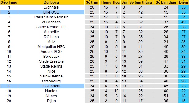 Tuy vẫn đang nằm ở vị trí phải đi đá play-off tranh vé vớt nhưng Lorient đã san bằng khoảng cách về điểm số với nhóm các đội trụ hạng và còn đang thi đấu ít hơn 2 trận so với đội bóng xếp trên là Nantes.