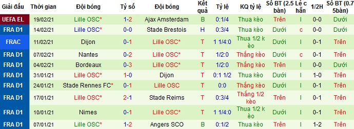+ Thống kê 10 trận gần nhất của Lille