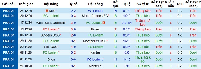 Thành tích gần đây của Lorient là khá tệ khi ở 5 trận gần nhất đội bóng chỉ có được 1 trận thắng, 1 trận hòa và để thua 3 trận. Ngay cả trên sân nhà Lorient cũng chỉ có được 1 chiến thắng duy nhất trước đội bét bảng Nimes, để thua ở cả 4 trận còn lại trong 5 trận gần nhất tại đây.