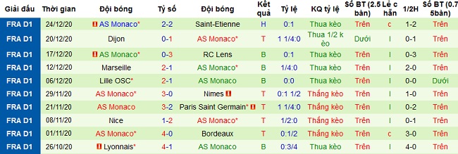 + Thống kê 10 trận gần nhất của Monaco