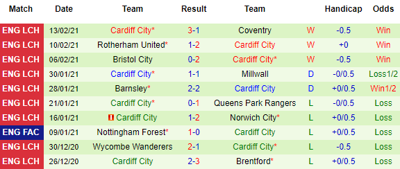 + Soi tỷ lệ kèo châu Á: Dẫu phong độ đang cao nhưng Cardiff cũng chỉ chấp đồng banh với điểm bỏ rất sâu, đó chưa phải tỷ lệ gì đột phá so với quá khứ. Cardiff tỏ ra không có duyên với mức handicap này, khi 4 lần gần nhất chấp 1/4, họ đều không thắng, thậm chí thua tới 3 trận.