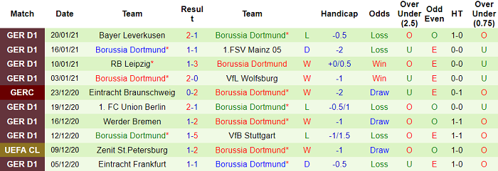 Phong độ và thống kê đối đầu M’gladbach - Dortmund gần đây