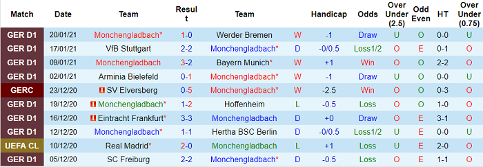 Thành tích gần đây của M’gladbach tốt hơn đôi chút so với Dortmund. M’Gladbach bất bại cả 4 vòng vừa qua: thắng 3, thua 1 còn Dortmund chỉ thu về 7 điểm trong cùng khoảng thời gian.