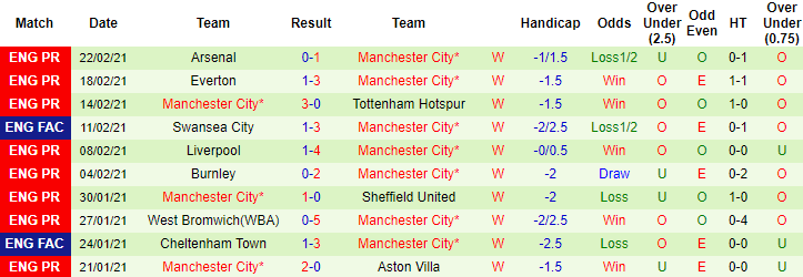 + Thống kê 10 trận gần nhất của Man City