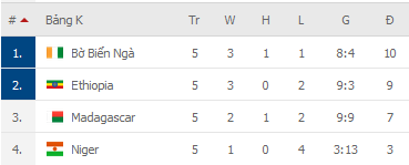 Phong độ và thống kê đối đầu gần đây Madagascar vs Niger:
