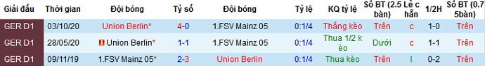 + Lịch sử đối đầu Mainz 05 vs Union Berlin
