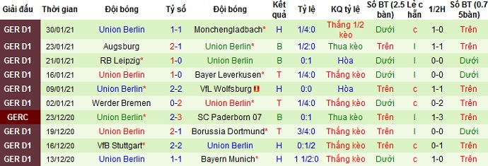 + Thống kê 10 trận gần nhất của Union Berlin