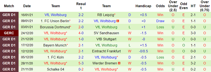 - Thống kê 10 trận gần nhất của Wolfsburg