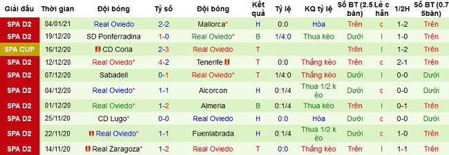 Ở 5 trận gần đây Ovideo cũng có được 3 trận thắng, 1 trận hòa và 1 trận thua. Ngay cả trên sân khách Oviedo cũng thắng 4 trận, hòa 1 trận trước khi để thua Ponferradina 0-1 ở lần du đấu gần nhất.