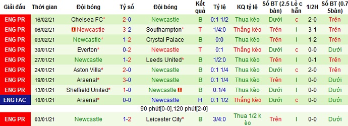 + Thống kê 10 trận gần nhất của Newcastle