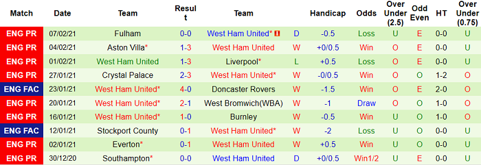 Thất bại duy nhất của West Ham kể từ Giáng sinh tới hiện tại diễn ra trước Liverpool. Thất bại ấy cho thấy The Hammers dường như vẫn ‘yếu bóng vía’ khi so tài cùng các thành viên của nhóm Big Six. Trước khi thua Liverpool, West Ham từng thua Arsenal, Chelsea và chính MU ngay tại sân London Stadium.