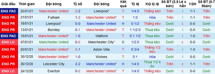 + Thống kê 10 trận gần nhất của Manchester United