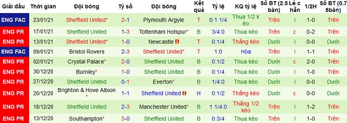 + Thống kê 10 trận gần nhất của Sheffield United