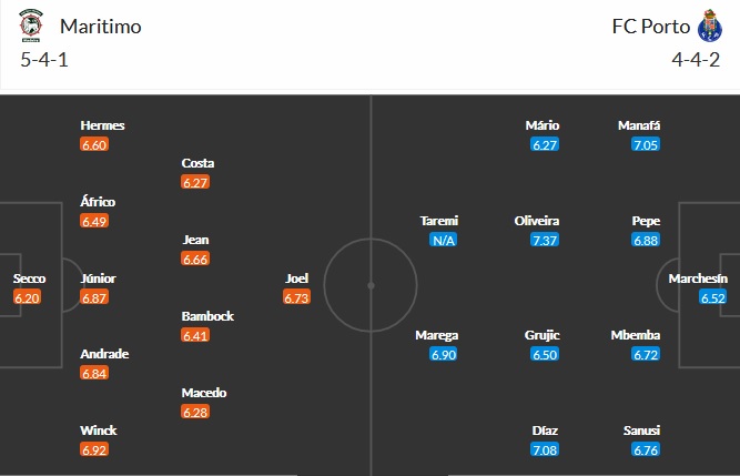 Đội hình dự kiến Marítimo vs Porto