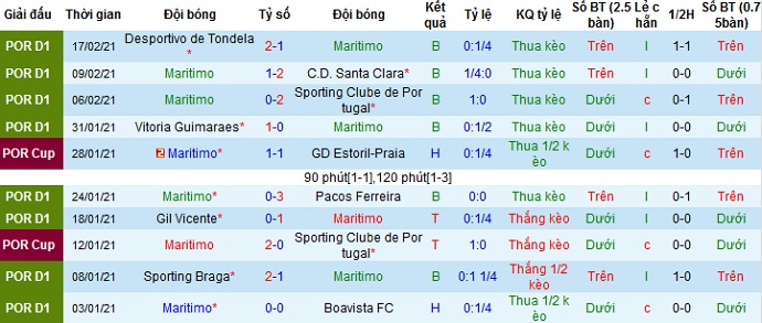 + Thống kê 10 trận gần nhất của Marítimo