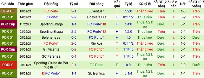 + Thống kê 10 trận gần nhất của Porto