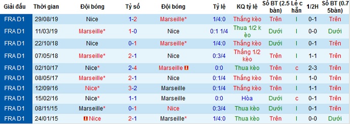 Tỷ lệ kèo Marseille vs Nice