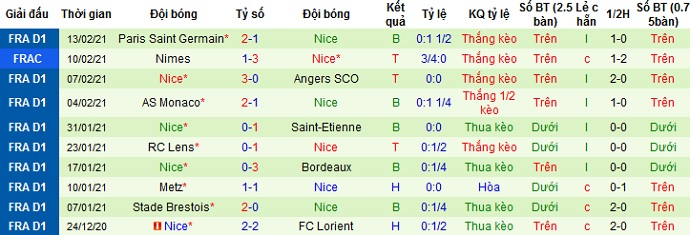 + Thống kê 10 trận gần nhất của Nice