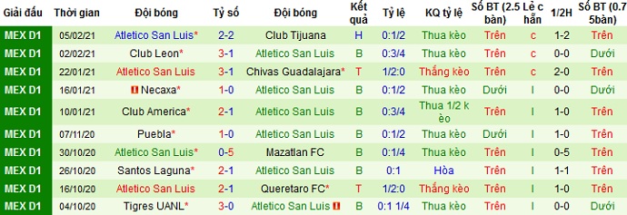 Trong 5 trận gần nhất San Luis cũng chỉ có được 1 trận thắng, 1 trận hòa và để thua 3 trận. Trên sân khách thành tích của đội bóng còn tệ hơn khi trong 5 lần du đấu gần nhất đội bóng để thua tới 4 trận, chỉ thắng được 1 trận giao hữu duy nhất.