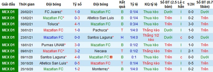 + Soi tỷ lệ kèo châu Á: Tuy xếp dưới đối thủ ở bảng xếp hạng nhưng với lợi thế sân nhà nên Mazatlán vẫn đang được đánh giá là đội cửa trên, cho dù kèo chấp cũng chỉ là -0,25.