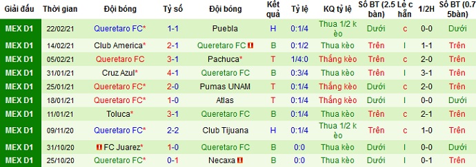 + Thống kê 10 trận gần nhất của Querétaro