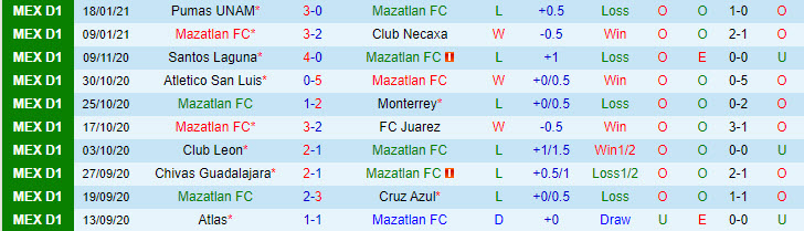 Trở lại lượt về, Mazatlan không quá nhiều tiến bộ so với giai đoạn đầu mùa giải. Cụ thể, họ chỉ có được 1 trận thắng trước 3-2 trước đội bóng tầm trung Necaxa ở trận mở màn. Rồi ở lượt trận mới đây, Mazatlan có trận thua đậm 0-3 trước Pumas UNAM. Nếu nhìn rộng hơn, họ vừa thua tới 6/9 trận gần đây tại giải đấu số 1 Mexico.