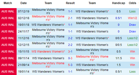 + Lịch sử đối đầu Melb. Victory (W) vs WS Wanderers (W)