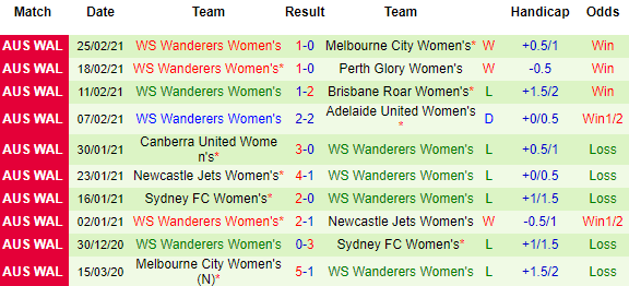 + Thống kê 10 trận gần nhất của WS Wanderers (W)