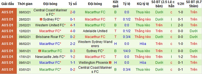 + Thống kê 10 trận gần nhất của Macarthur