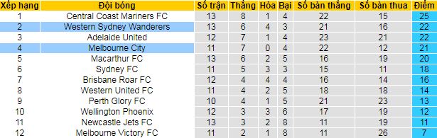 + Lịch sử đối đầu Melbourne City vs Western Sydney Wanderers