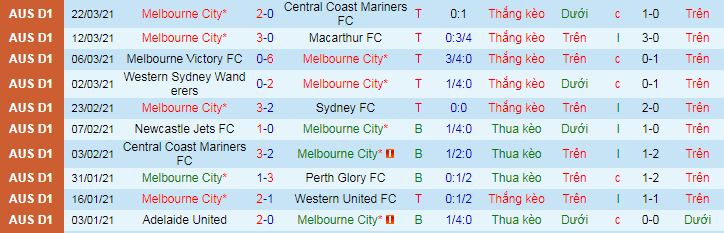 + Thống kê 10 trận gần nhất của Melbourne City