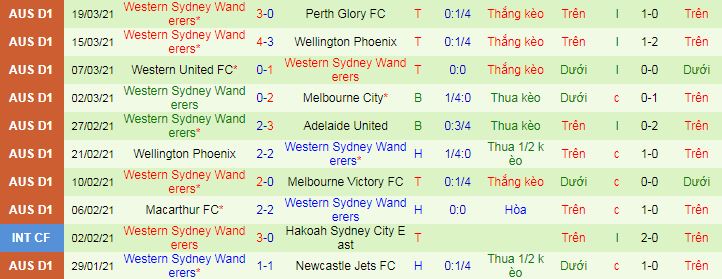 + Thống kê 10 trận gần nhất của Western Sydney Wanderers