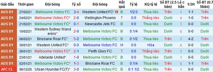 + Thống kê 10 trận gần nhất của Melbourne Victory