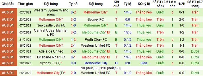 Sau 3 trận thua liên tiếp Melbourne City cũng có được 2 trận thắng mới đây trong số 5 trận gần nhất. Trên sân khách sau 3 trận thua từ đầu mùa giải mới đây Melbourne City cũng có được chiến thắng trên sân của Western Sydney Wanderers với tỷ số 2-0.