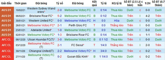+ Thống kê 10 trận gần nhất của Melbourne Victory