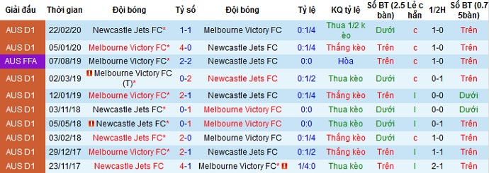 + Lịch sử đối đầu Melbourne Victory vs Newcastle Jets