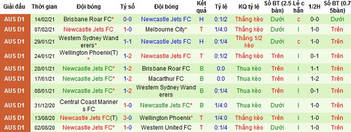 Để thua cả 4 trận đầu tiên ở mùa giải mới , Newcastle Jets đang có sự tiến bộ đáng kể khi thắng 2, hòa 2 trong 4 vòng đấu gần đây. Trên sân khách thành tích của đội bóng cũng không quá tệ khi thắng 1, hòa 3 và để thua 1 trong 5 lần du đấu gần nhất.