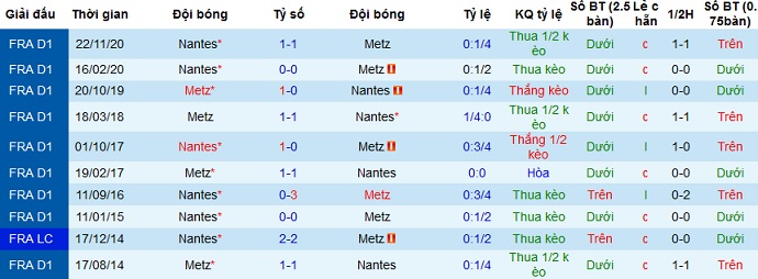 Trong 6 trận sân nhà gần đây Metz cũng chỉ thắng được 1 trận duy nhất, trong khi Nantes chắc chắn sẽ chơi chặt chẽ để hy vọng ra về với 1 điểm nên chọn cửa dưới ở trận đấu này vẫn an toàn hơn cả.